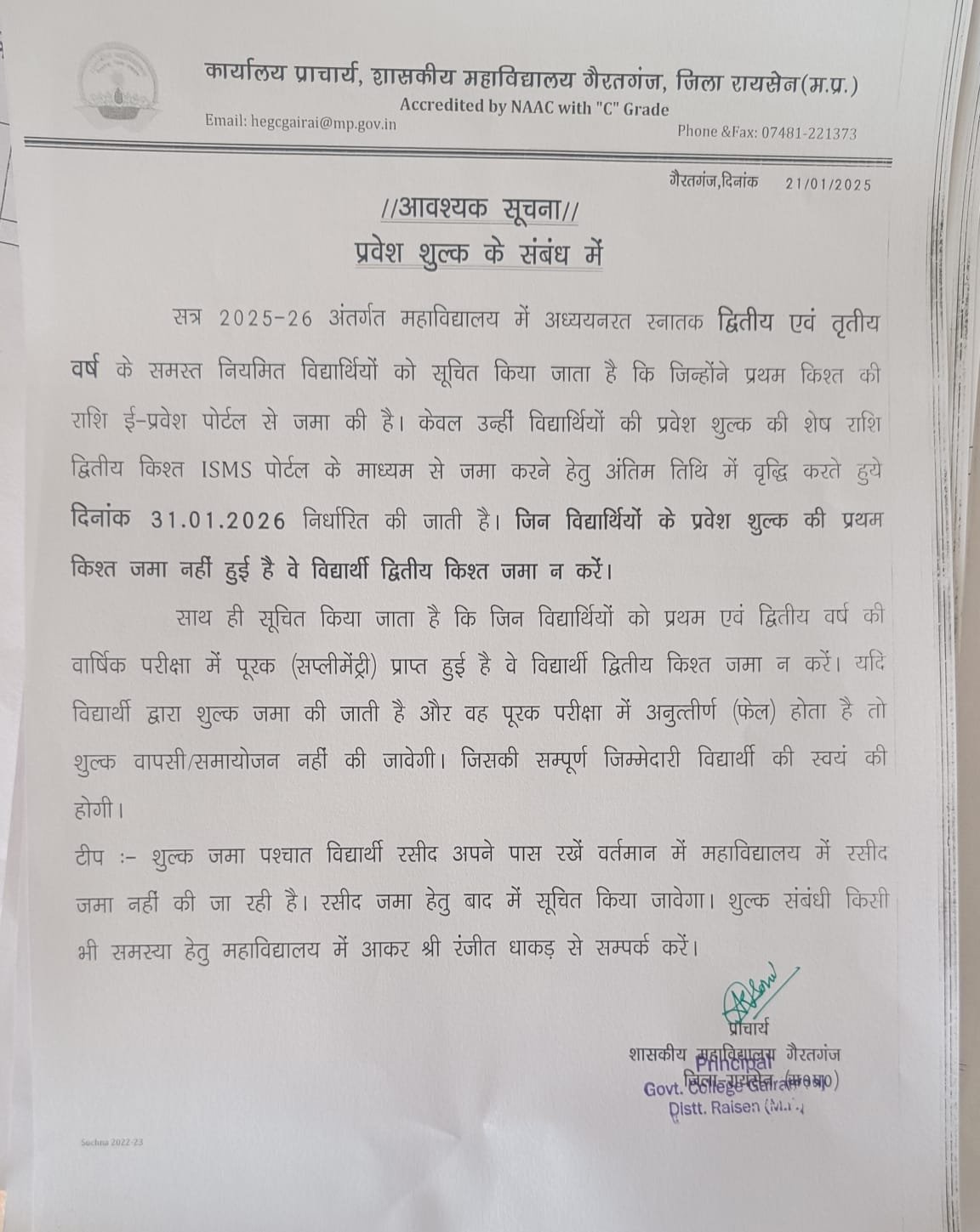 हमारे छात्र एक संस्थान के रूप में हमारे अस्तित्व का मूल हैं, और हम उनके सपनों को पंख देना चाहते हैं। मैं अपनी शुभकामनाएं देता हूं और ईमानदारी से आशा करता हूं कि छात्र उत्कृष्ट पेशेवर, उद्यमी और महान इंसान बनने के अवसरों का सर्वोत्तम उपयोग करेंगे। आइए हम सब मिलकर महाविद्यालय परिसर में एक स्वस्थ और सौहार्दपूर्ण माहौल को बढ़ावा दें। हम आपको इस शिक्षा के मंदिर को नई ऊंचाइयों पर ले जाने के लिए अपने पूरे दिल से बौद्धिक योगदान के लिए डॉ ए पी जे अब्दुल कलाम सर के इस अनमोल विचार के साथ आमंत्रित करते हैं: